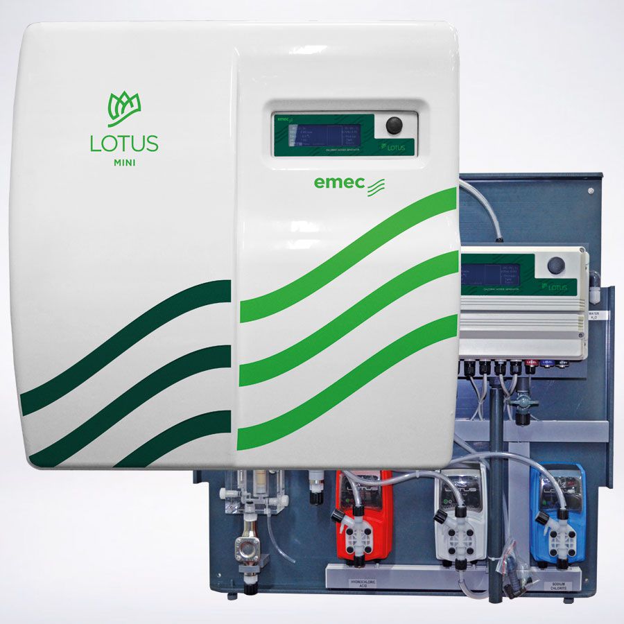 Chlorine dioxide produced by LOTUS MINI is set to be proportional to the circulating water flow or based on a set-point – it is then dosed into the water flow. There is no storage of chlorine dioxide hence no chlorine dioxide gas or concentrated solutions exist outside of the process application.